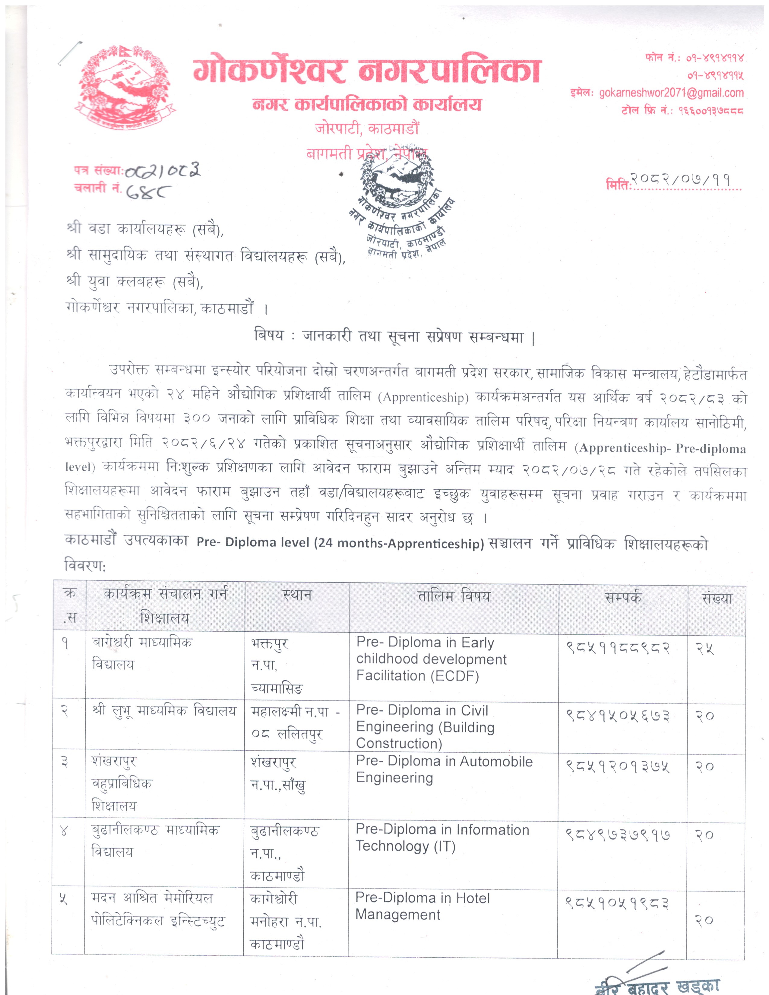 नयाँ शैशिक सत्र २0८२ संचालन एवं व्यबस्थापन सम्बन्धी परिपत्र।