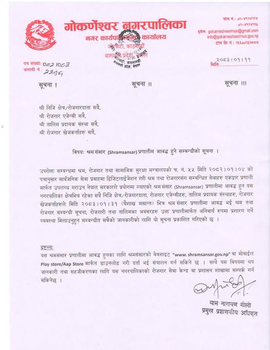 श्रम तथा रोजगार सेवाको लागि श्रम संसार प्रणालीमा आवद्द हुने सम्बन्धी सूचना ।