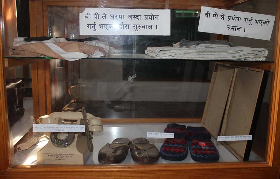 The deteriorated physical structures, received from the army in poor condition, were renovated and brought into operation by the B.P. Museum Committee. This museum is Nepal's first and only institution established in the name of a political figure. It has also been expanded to serve as a political library. Artifacts for the museum were collected from Morang, Sunsari, and Banaras (India). Many personal items used by B.P. Koirala are preserved and displayed in the museum.